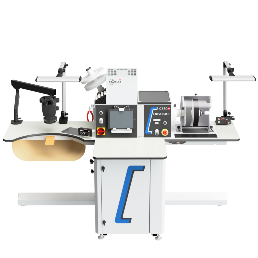 With the C530 jewellery making station, CREVOISIER is harnessing its recognised experience in precision polishing for the jewellery making trades. This innovative station combines an SLINE2 polishing station base – featuring that range’s compactness, performance and quiet running – with a built-in area dedicated to jewellery work, on the left-hand side.