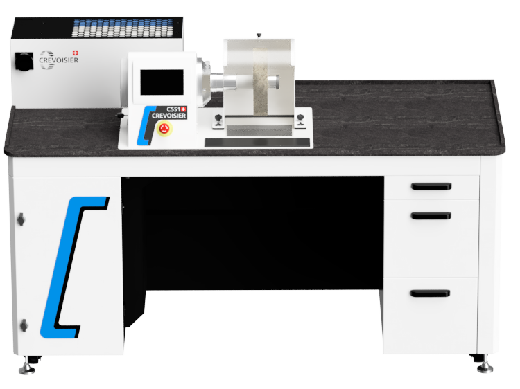 Discover the C551, a high-end polishing machine combining exceptional performance and elegant design. Featuring a user-friendly touchscreen interface, it provides an intuitive user experience. Its integrated 2.1 kW spindle motor guarantees impeccable polishing results. Versatility is in the spotlight with full compatibility of Crevoisier® tools, allowing you to adapt your workspace according to your needs. Its robust construction and careful finishes make it an ideal choice for demanding professionals. Available in modern colors (Grey RAL 7035, Black RAL 9011) with accents in Blue RAL 5015, the C551 combines aesthetics and functionality. Opt for Swiss quality in your polishing workshop with the C551.