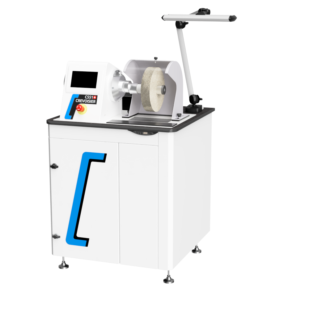 Discover the C551, a high-end polishing machine combining exceptional performance and elegant design. Featuring a user-friendly touchscreen interface, it provides an intuitive user experience. Its integrated 2.1 kW spindle motor guarantees impeccable polishing results. Versatility is in the spotlight with full compatibility of Crevoisier® tools, allowing you to adapt your workspace according to your needs. Its robust construction and careful finishes make it an ideal choice for demanding professionals. Available in modern colors (Grey RAL 7035, Black RAL 9011) with accents in Blue RAL 5015, the C551 combines aesthetics and functionality. Opt for Swiss quality in your polishing workshop with the C551.